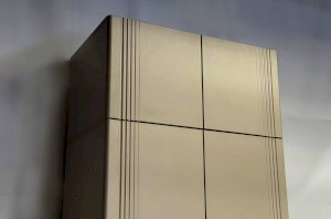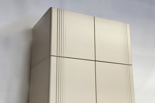 Особое внимание заслуживает фрезеровка фасадов, которая придаёт антресоли изысканный вид. Толкатели PUSH вместо ручек обеспечивают удобное открывание нажатием.