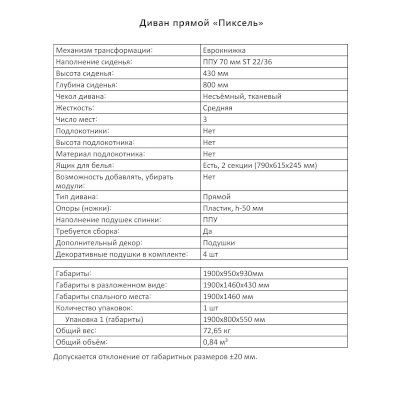 Диван Пиксель (Аквилон) – товар доступен к покупке в интернет-магазине krasnodarskiy-dommebeli.ru. Цена – 30 317 руб. без учета доставки. Стоимость дополнительных услуг и сроки получения мебели уточняйте у менеджера. Возможен безналичный расчет, оплата по карте на сайте.